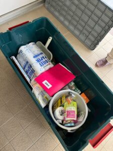大型犬なら「タスキ掛けにできる長いリード」で柱などに繋げる対策を、小型・中型犬なら「ペグ」を避難道具に入れておき、リードを固定する対処が必要です。現在の避難所は動物を連れて中に入ることができないため、一時的に外に繋いでおける道具の準備が必須だと感じました。